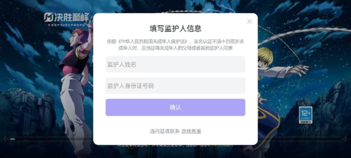 (图说:沐瞳《决胜巅峰》要求填写监护人姓名及身份证信息)