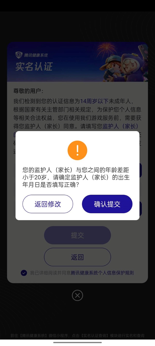 (图说:当监护人与用户年龄差距过小时腾讯会弹窗进行确认)