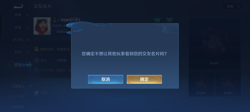 (图说:《王者荣耀》可设置可向其他玩家隐藏交友名片)