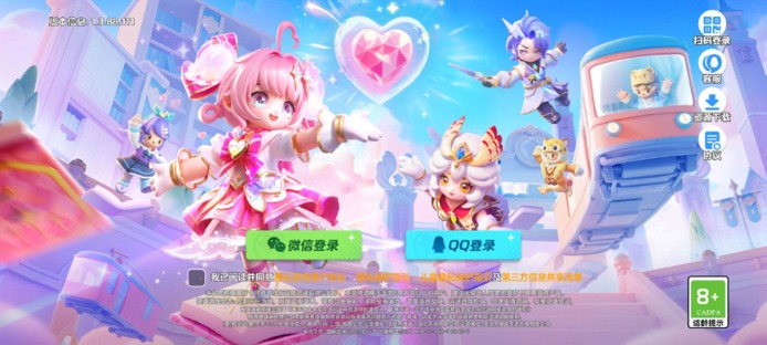(图说:腾讯《元梦之星》中,开始游戏前要求用户勾选阅读且同意用户协议与隐私政策、第三方信息清单、后方可进入游戏,且右下角适龄提示为8+)