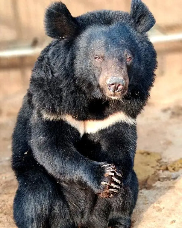 亚洲黑熊体型小点,200公斤左右,但胸前那撮V形白毛特别显眼。