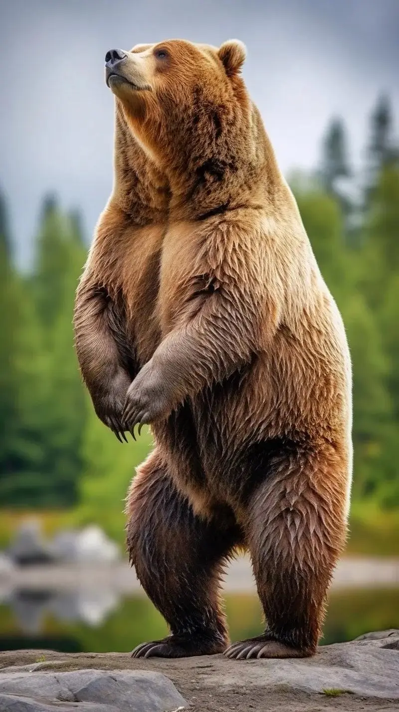 棕熊是个实打实的大块头,最大能长到800公斤,站起来比篮球架还高。